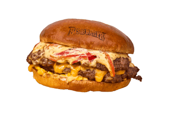 Carne vită, ceapă caramelizată, ceapă crocantă, brânză cheddar, sos dragon