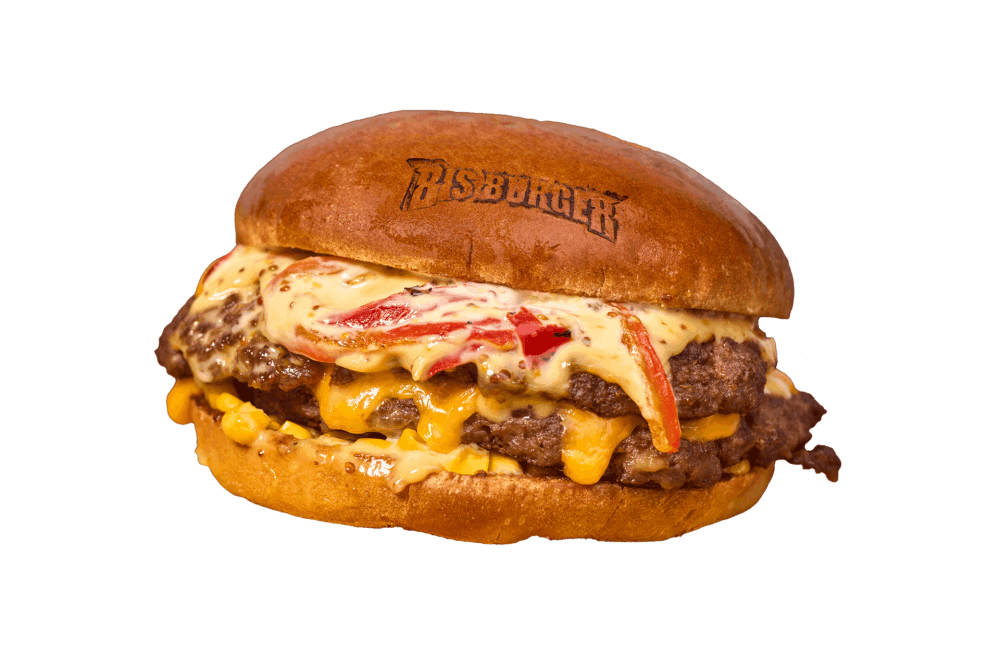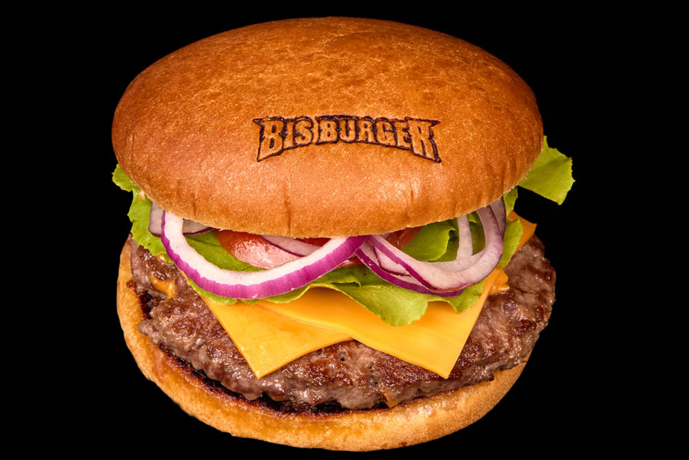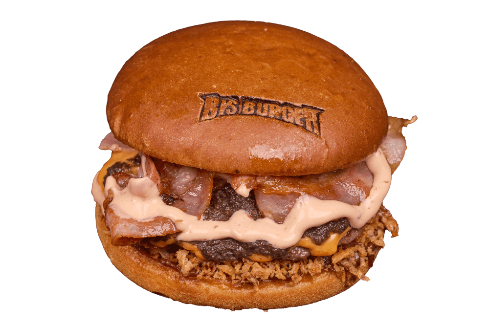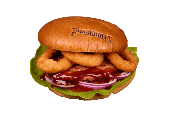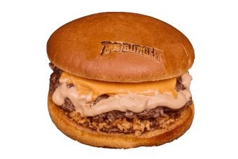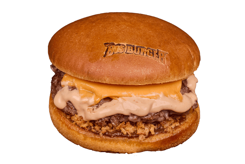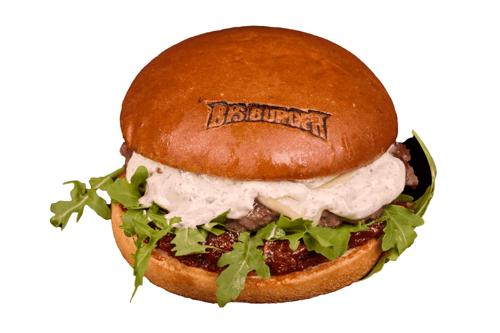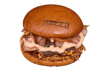 Carne vită, ceapă caramelizată, ceapă crocantă, ceapă, brânză cheddar, cremă trufe, bacon, sos bis de bis